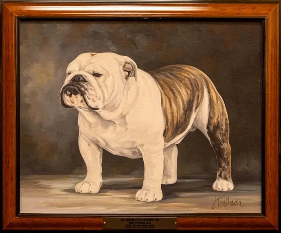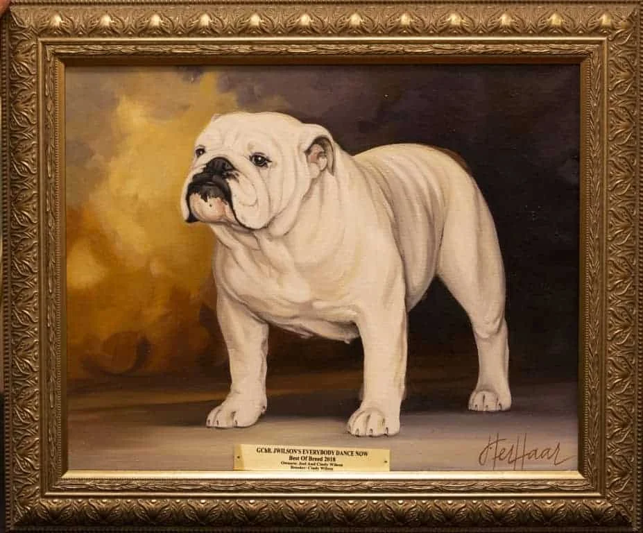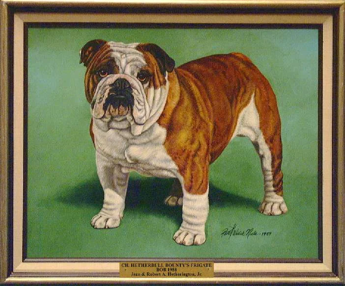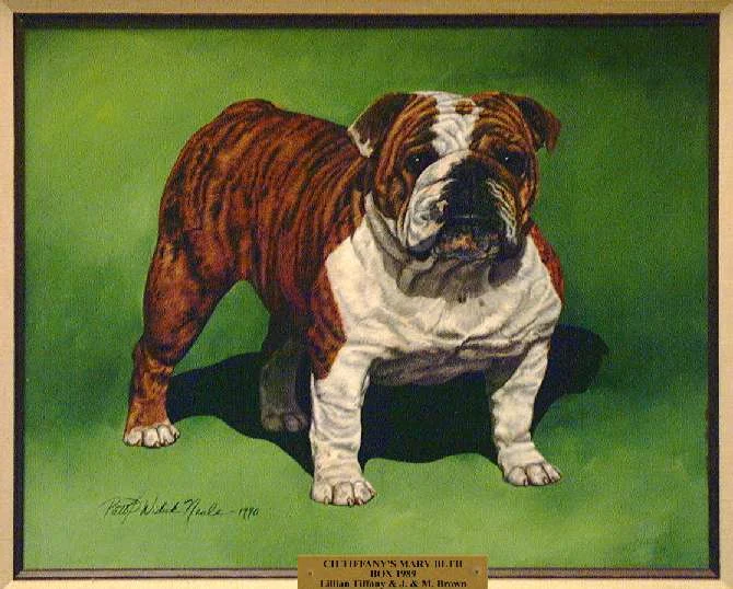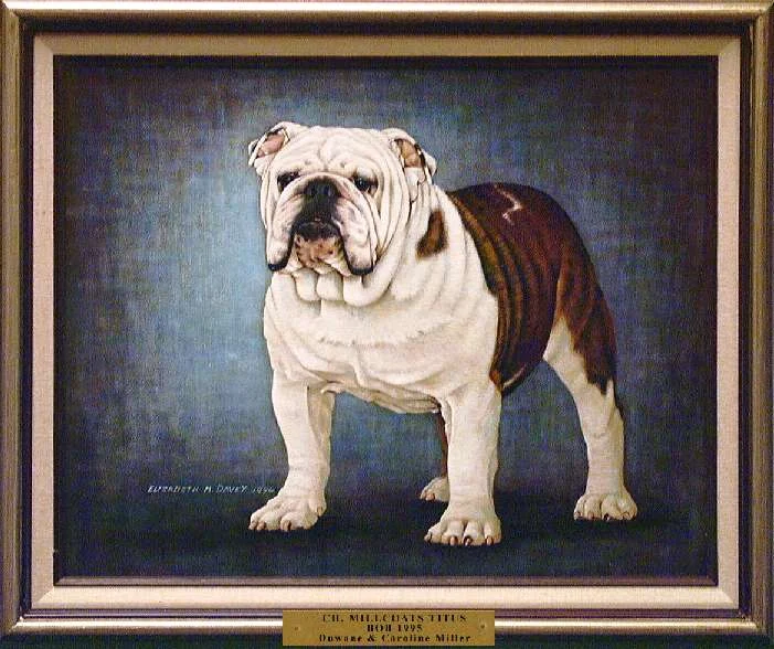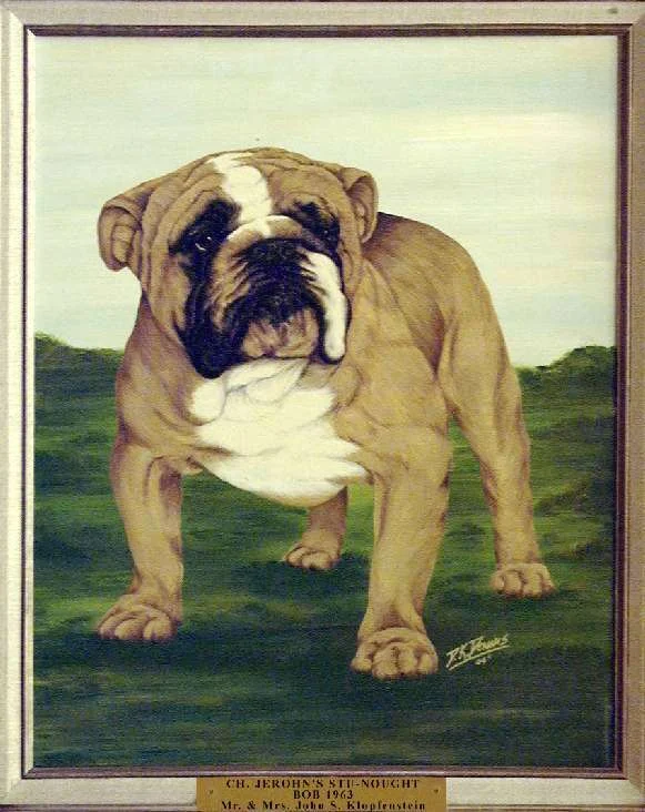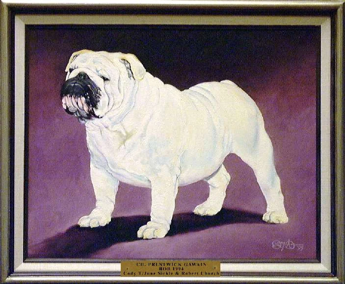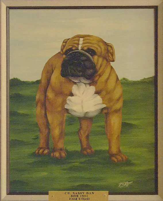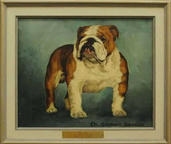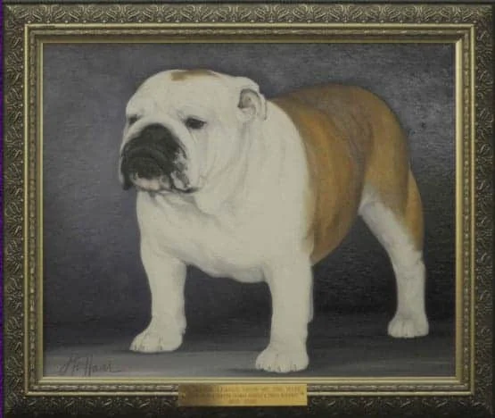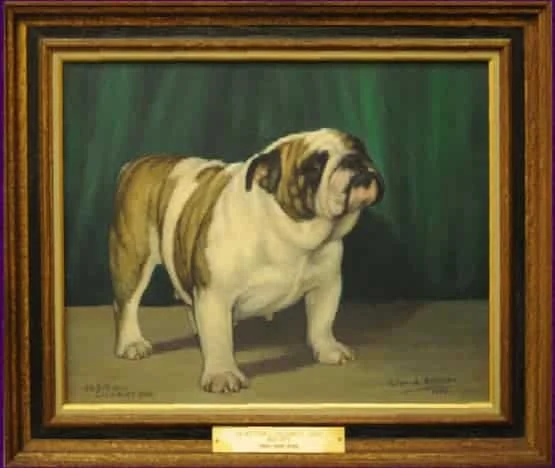 The painting was again displayed at the Bulldog Club of America banquet in Indianapolis in 1962. Mrs. Savage presented her thoughts for a Bulldog "Hall of Fame" at that time. Her idea was that members and clubs contribute to its formation and all winners since the reorganization of the Bulldog Club of America 14 years ago would be represented and each year thereafter a painting would be added. The idea was a tremendous success and the first seven paintings were unveiled at the Bulldog Club of America banquet the night of April 20, 1963 in St. Louis, thereafter to be displayed at each National Show.