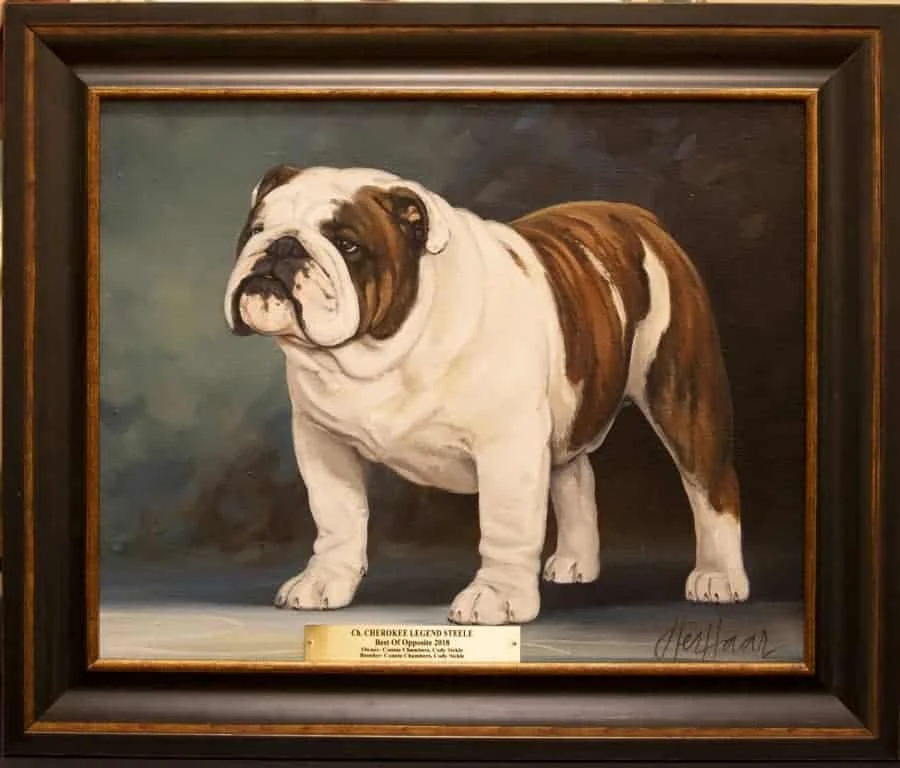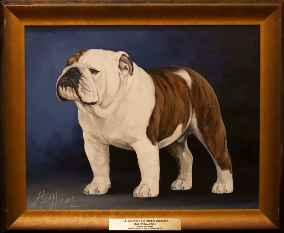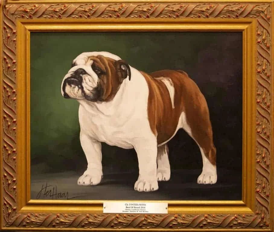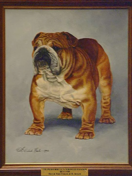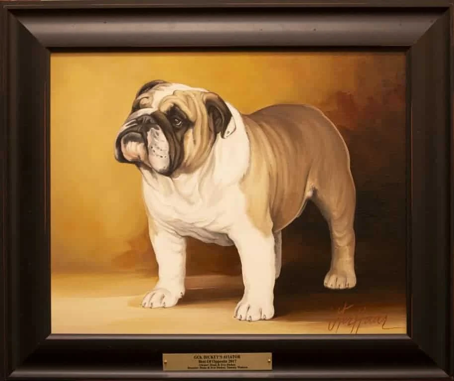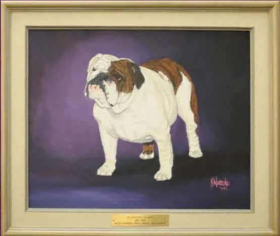 The National Gallery as we know it today was the brainchild of Mr. & Mrs. C.L. Savage and dates back to 1961 when an oil painting of CH Cockney Gorblimey on display at the National Show held in Oregon awakened the desire to capture the likeness and preserve for posterity the Bulldog Club of America National Specialty Winners.