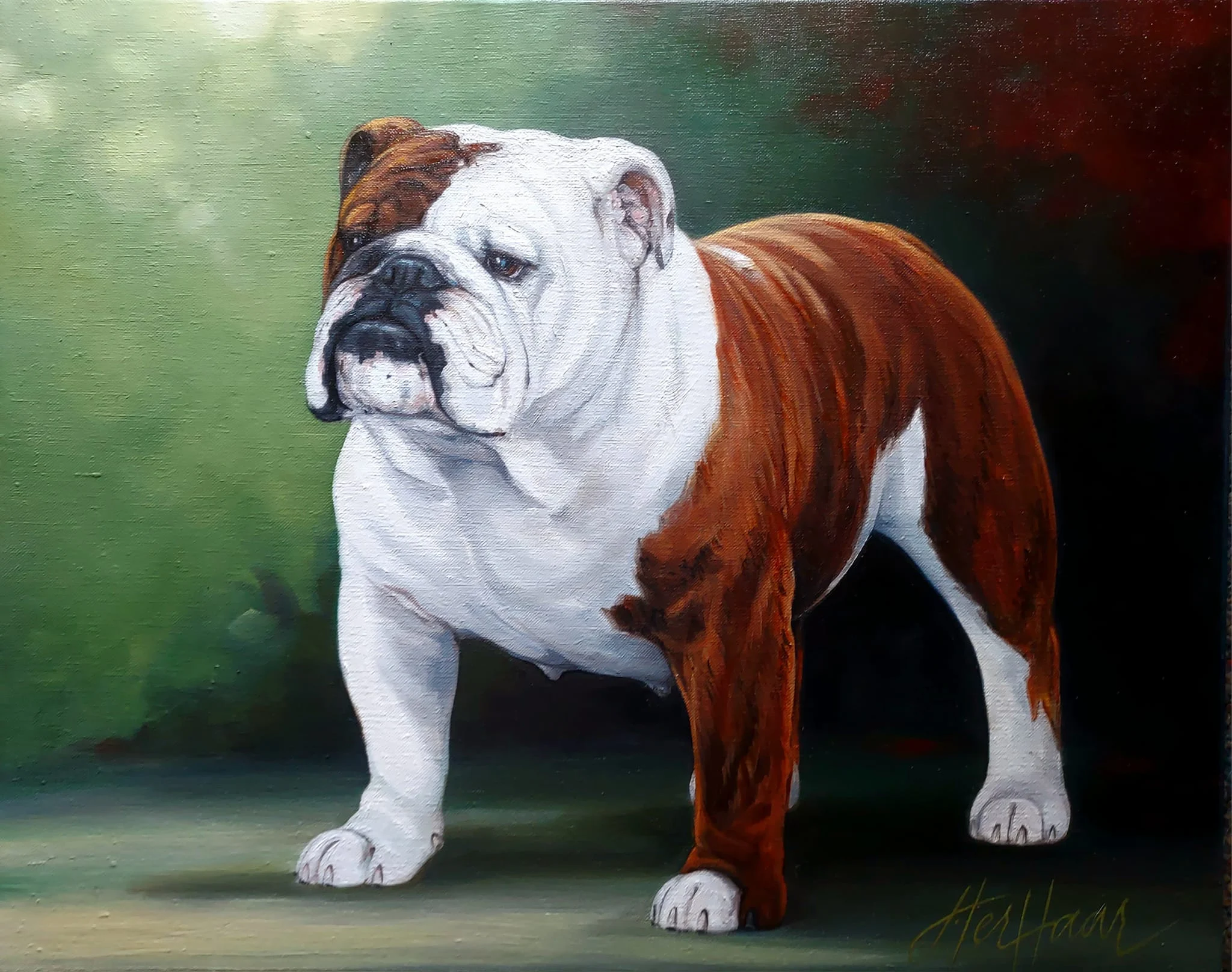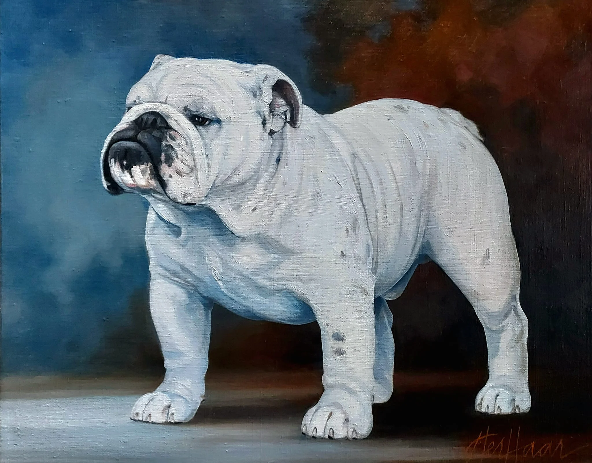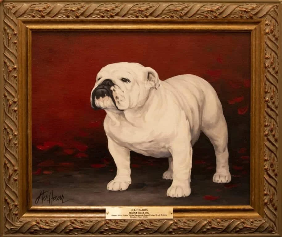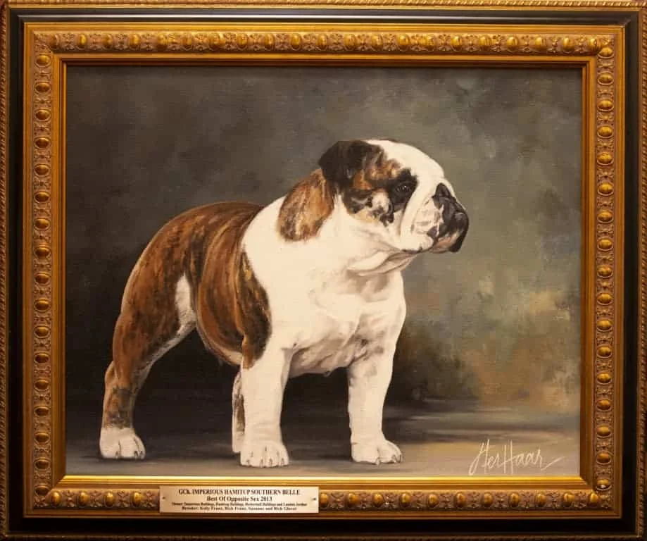 The National Gallery as we know it today was the brainchild of Mr. & Mrs. C.L. Savage and dates back to 1961 when an oil painting of CH Cockney Gorblimey on display at the National Show held in Oregon awakened the desire to capture the likeness and preserve for posterity the Bulldog Club of America National Specialty Winners.